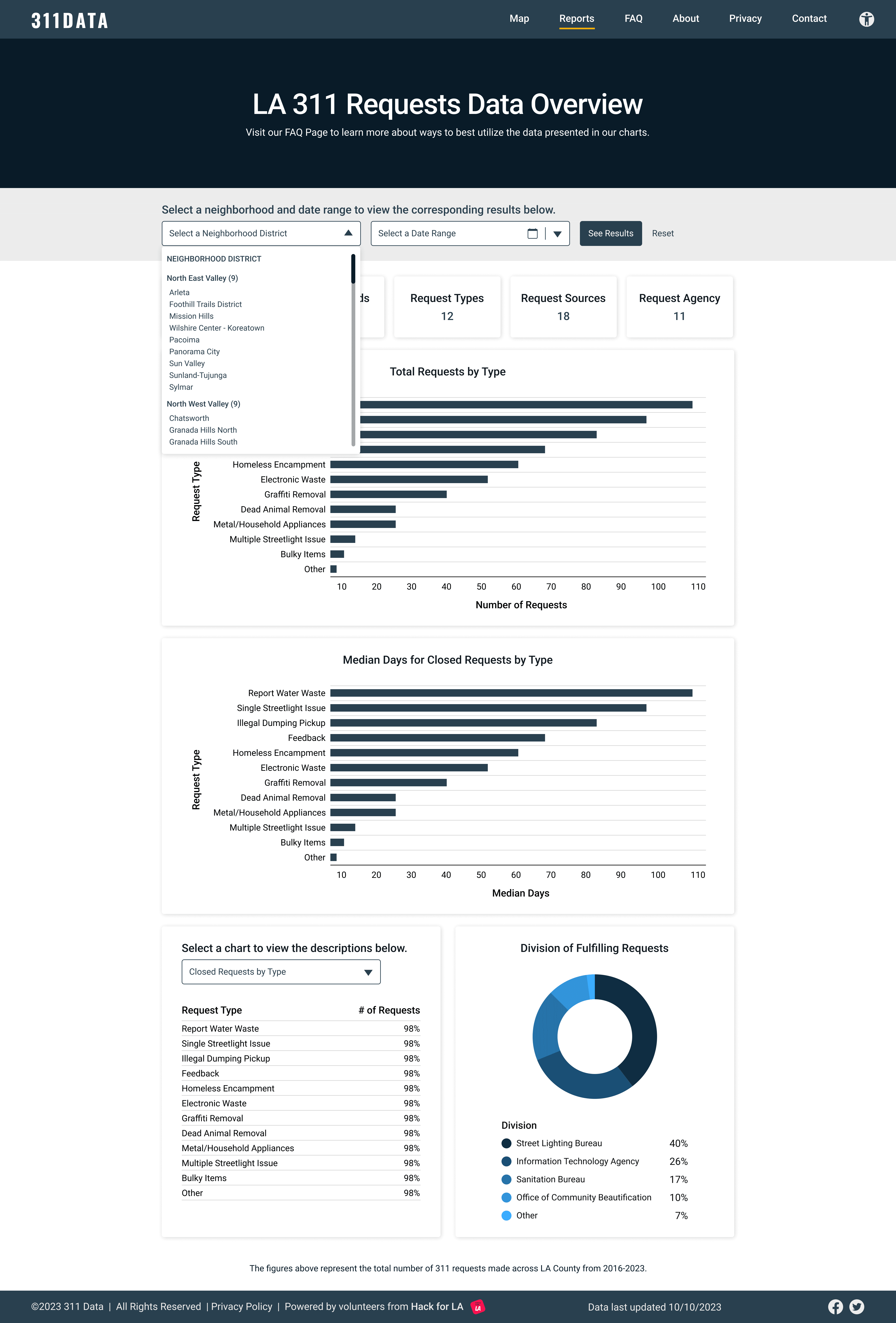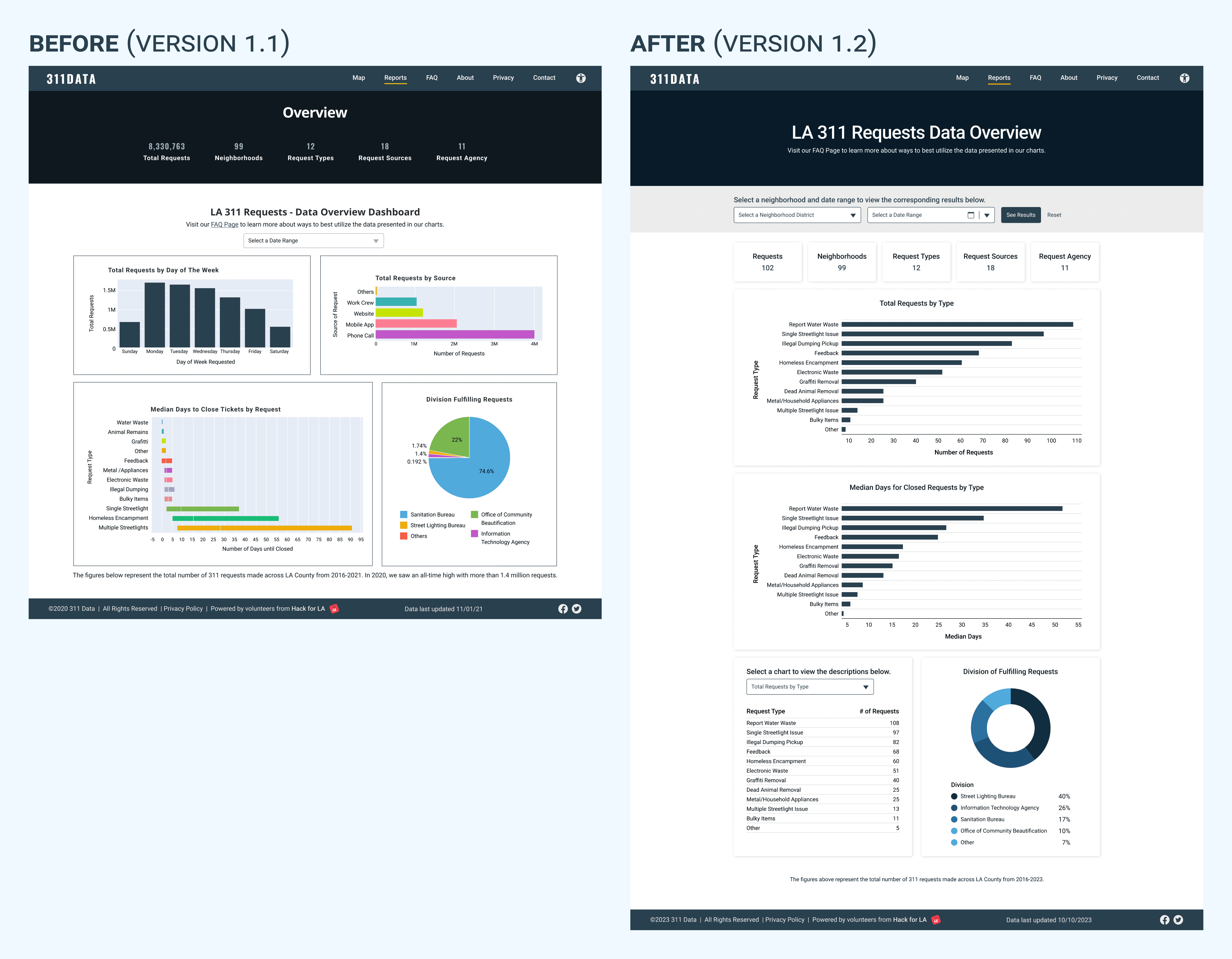The 311 Data team is now embarking on the V1.2 phase which will consist of a total redesign of the platform after thorough user research which consists of user interviews and user testing.
