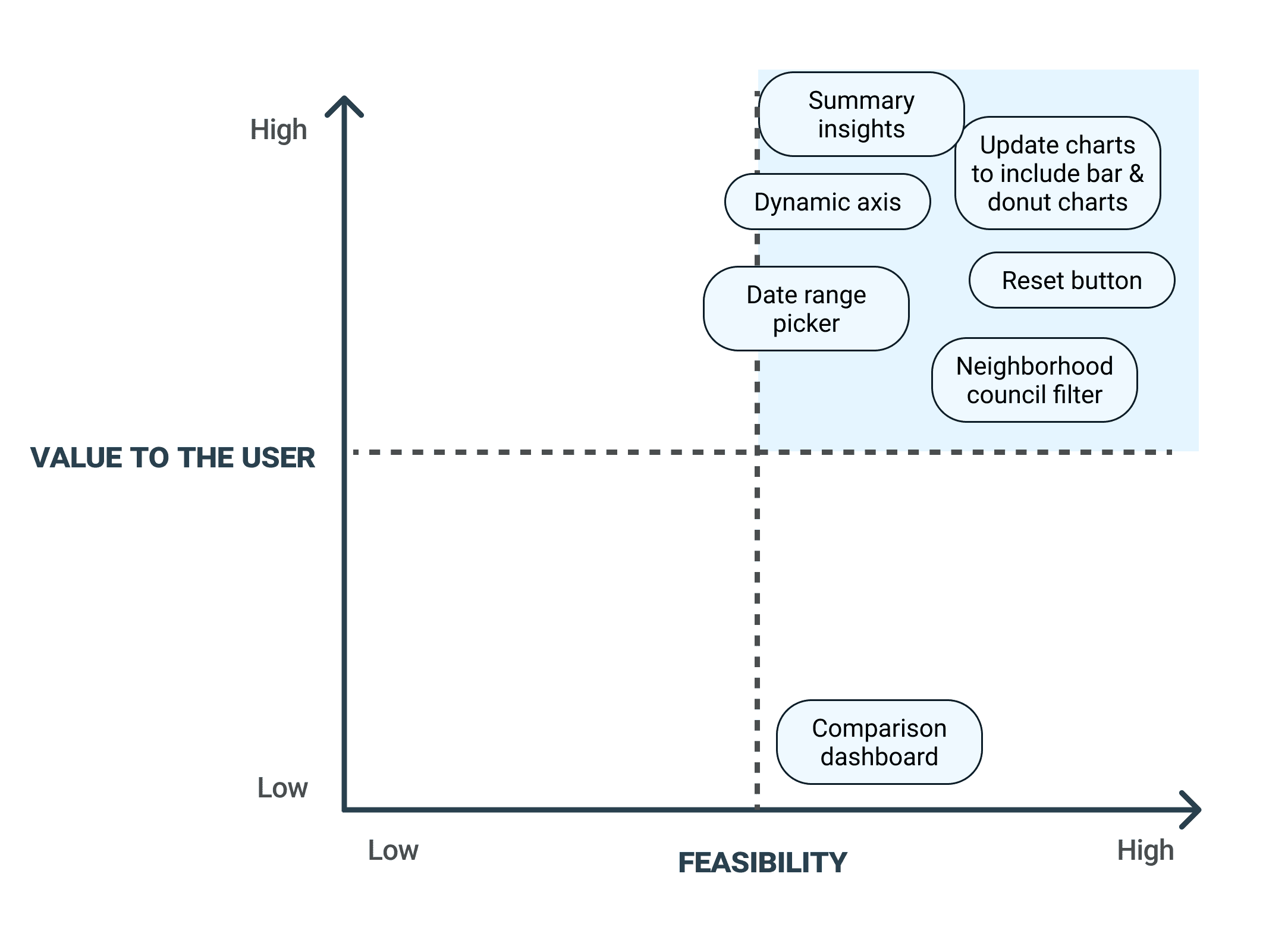 I worked closely with the head developer to discuss possible constraints and feedback since he was the lead engineer for the task of updating the dashboard. We discussed the feasibility of allowing the chart axis to be dynamic based on user search and data results, among other functionalities of the dashboard that would be useful and meet user needs.
