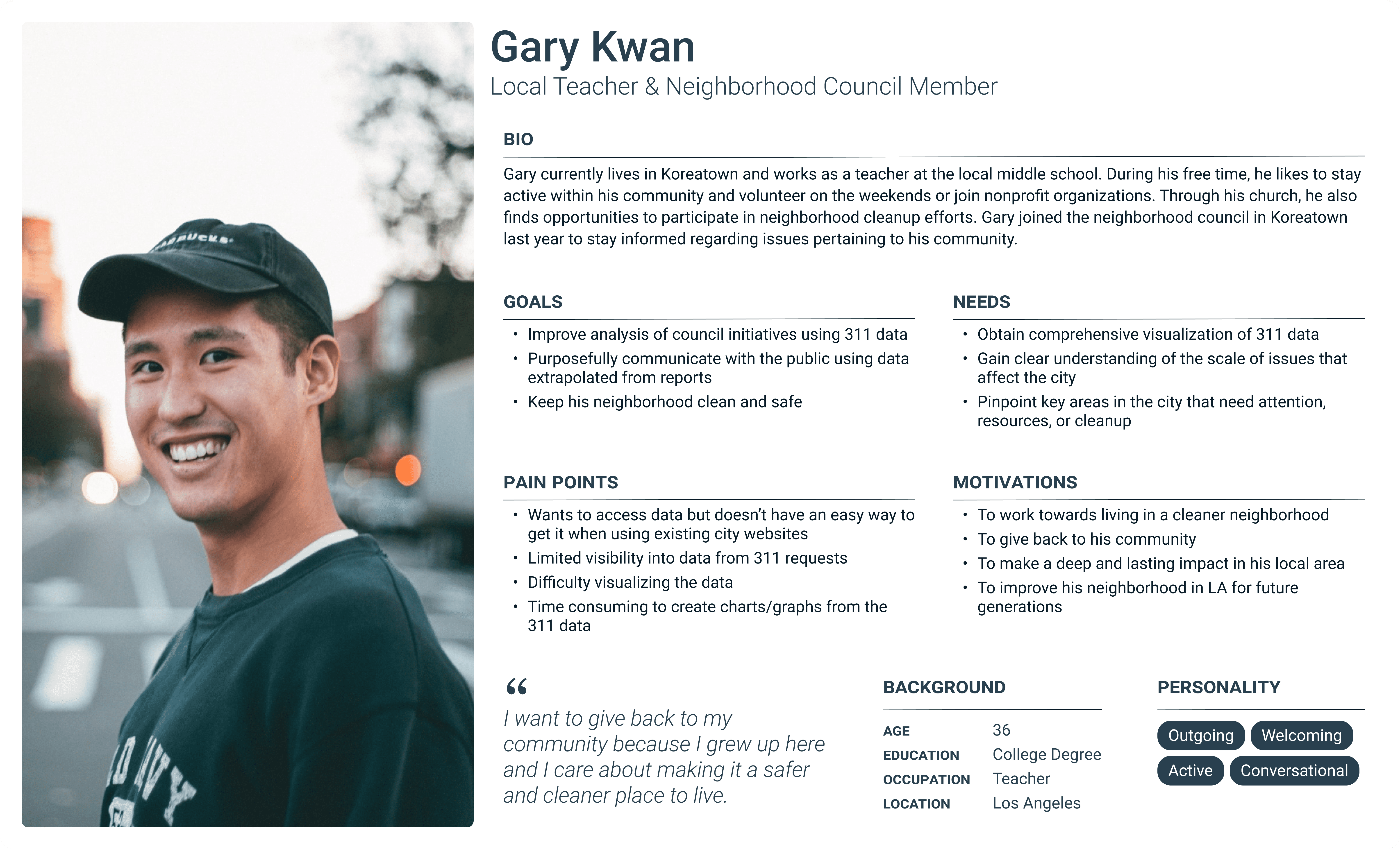 Redesign the 311 Dashboard based on user pain points with a quick turnaround time in order to get the site live to improve stakeholder relationships.