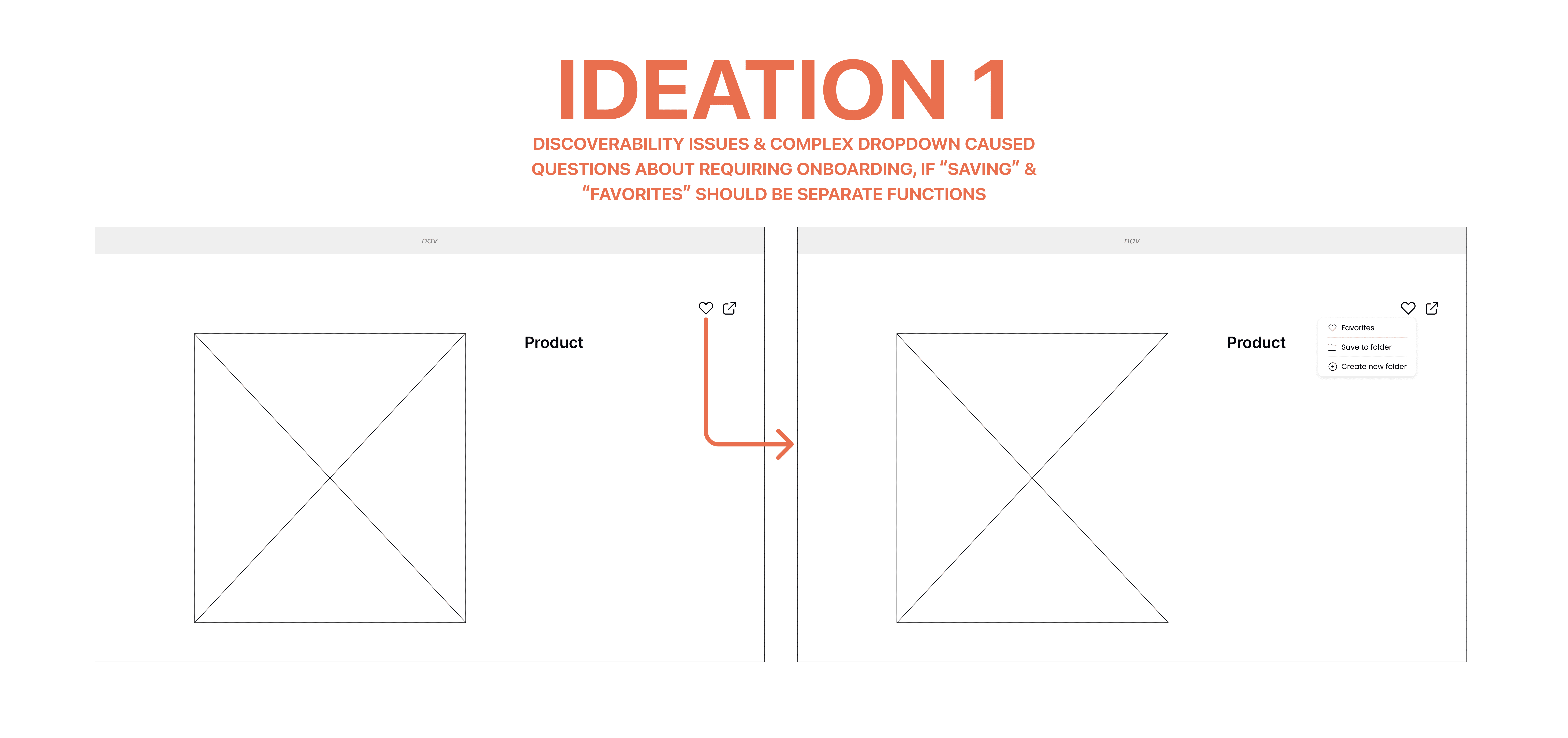 I shifted the interaction to make favoriting fast and commitment-free, encouraging users to heart products quickly and defer decisions about folder organization. If a user wanted to move a product to a folder immediately, they could do so through the confirmation snackbar.